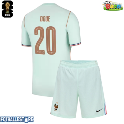 Frankrike Desire Doue #20 Bortedraktsett Barn VM 2026 Kortermet (+ Korte bukser)