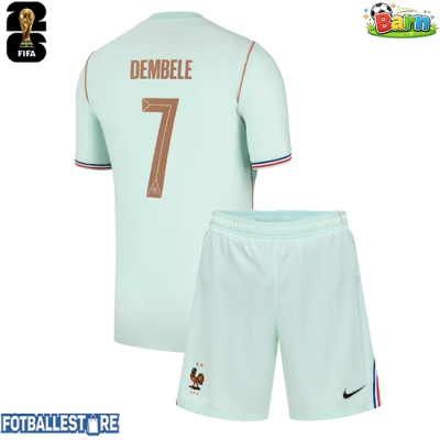 Frankrike Ousmane Dembele #7 Bortedraktsett Barn VM 2026 Kortermet (+ Korte bukser)