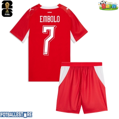 Sveits Breel Embolo #7 Hjemmedraktsett Barn VM 2026 Kortermet (+ Korte bukser)